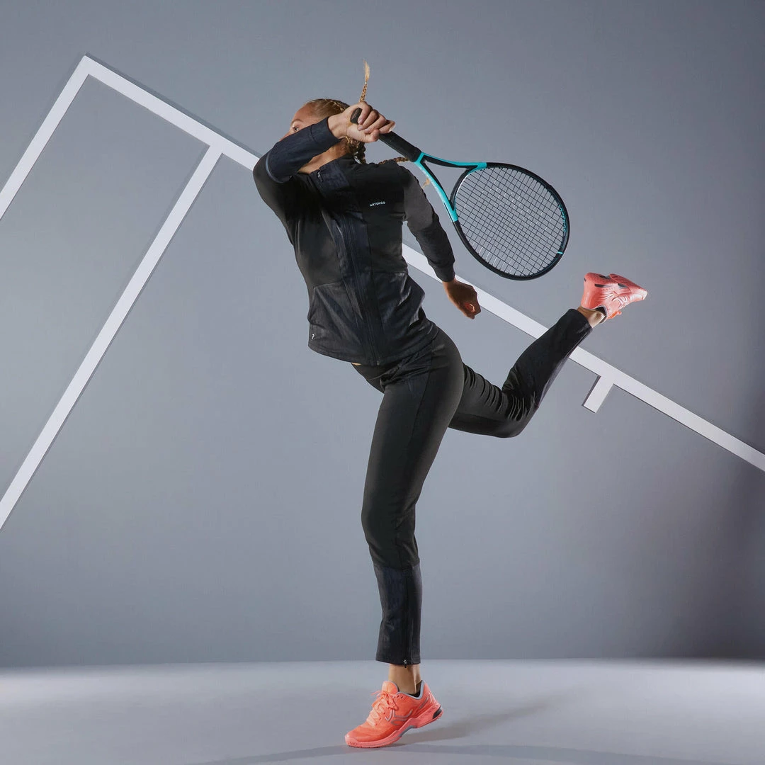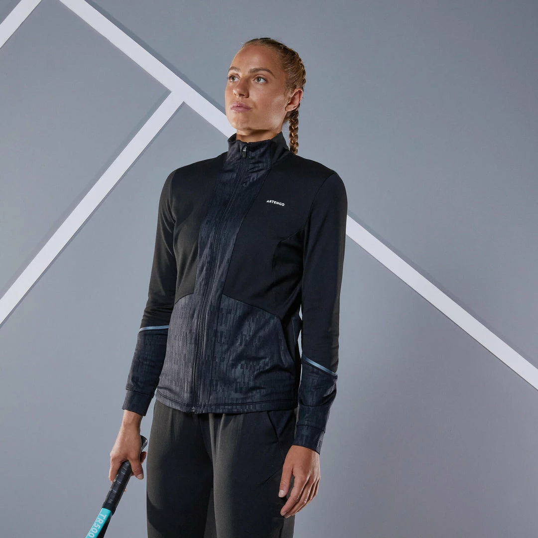 Our team of tennis enthusiasts has eco-designed this tennis jacket in recycled fabric for training sessions in cold weather. Suitable for other racket sports.