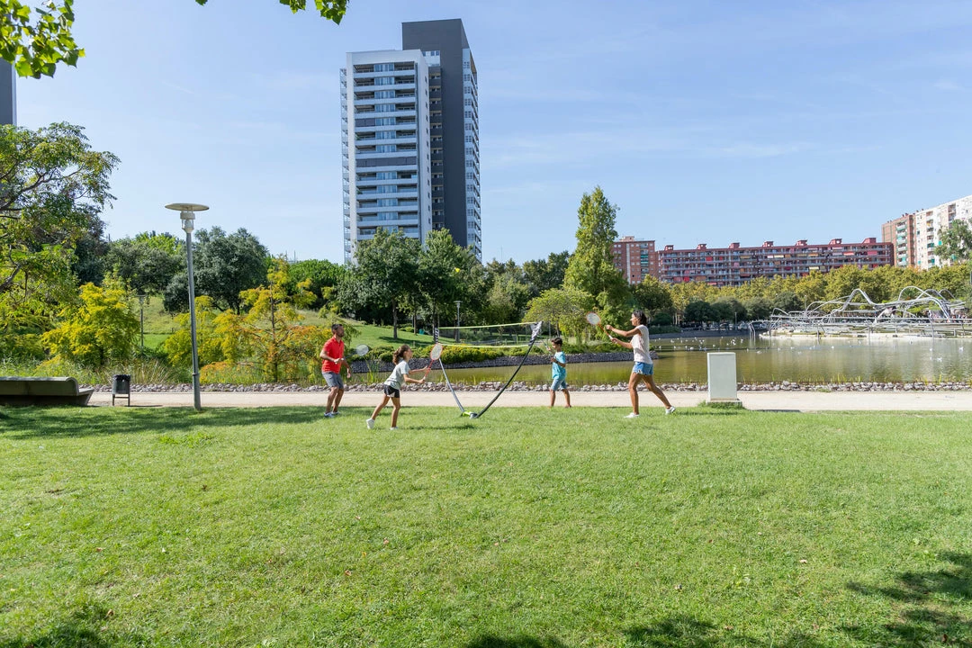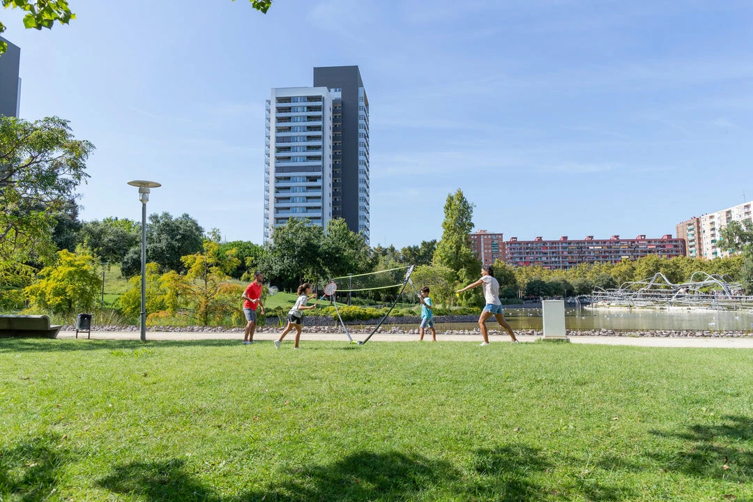 Having a fun with badminton at outdoor surface.